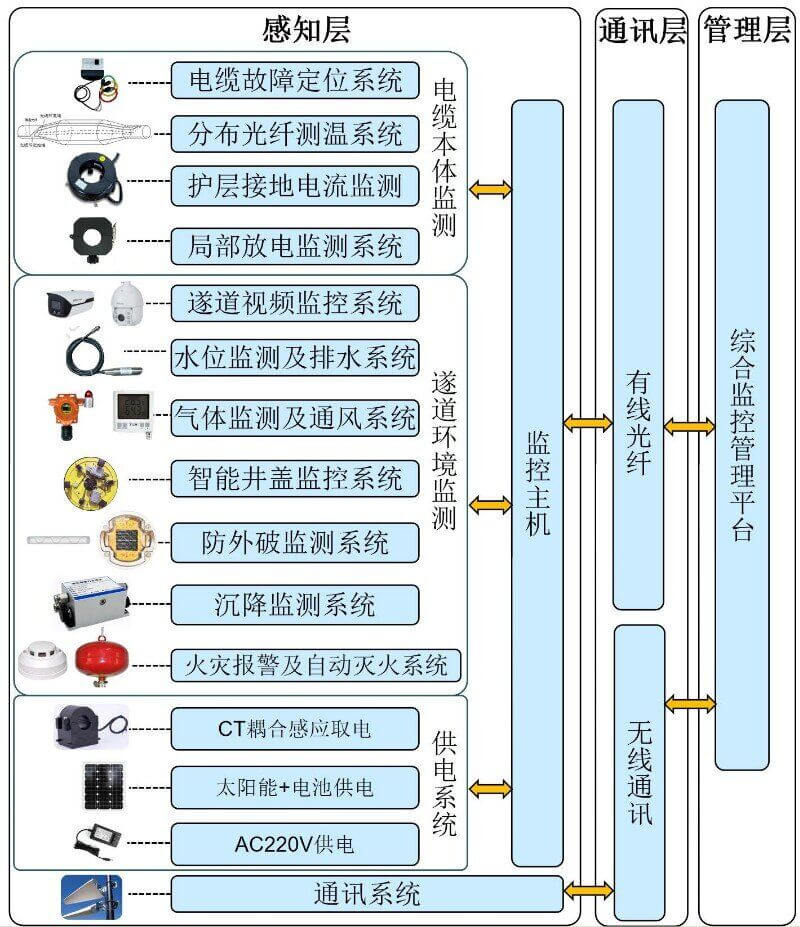 電纜隧道在線監控系統通過邊端設備,采用以太網接口MQTT協議接入物聯管理平臺,對整個隧道監控與管理。結合大數據技術和智能網絡算法。可分析和利用局放,護層,測溫等多種數據源,運用數據趨勢分析,人工智能學習,神經網絡診斷等高新技術手段,對電纜的運行狀態進行診斷分析,并輸出電纜狀態評價結果,為電力巡檢工作提供技術輔助和數據支撐,實現高端智能電網全面監測。