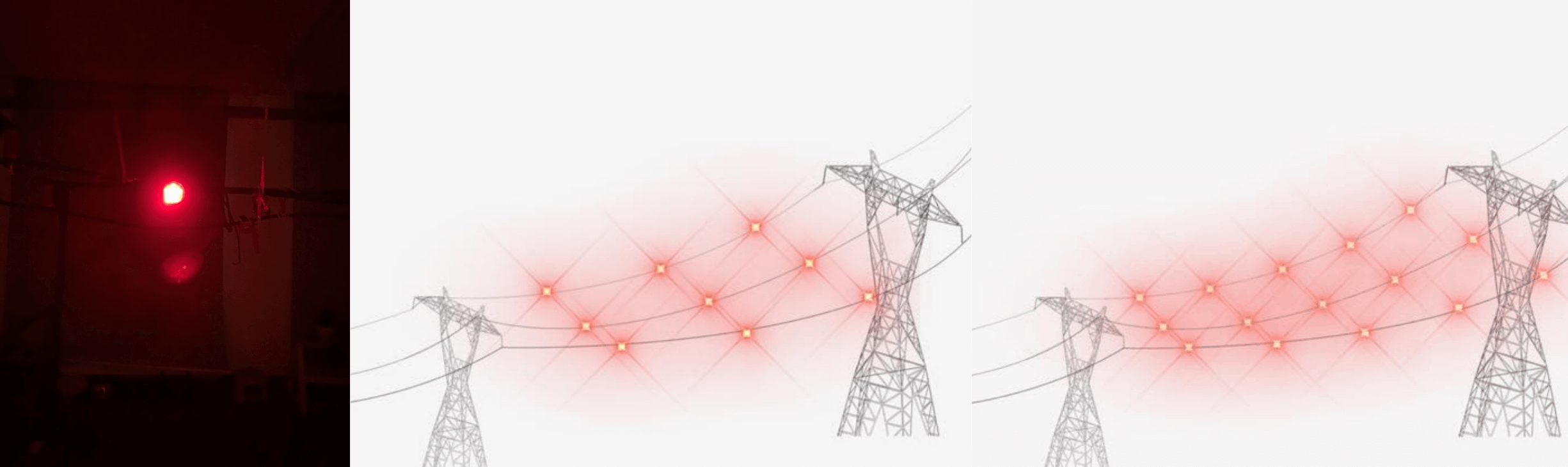 本產(chǎn)品直接懸掛安裝高壓帶架空線路顯示其是否帶有運(yùn)行電流的提示性安全裝置。當(dāng)高壓導(dǎo)線帶有運(yùn)行電流時(shí),裝置LED燈發(fā)出閃光,警示高壓線路帶電運(yùn)行,且具有分級(jí)顯示功能,線上電流越大時(shí)LED顯示強(qiáng)度越亮。產(chǎn)品可起到帶電安全警示作用,同時(shí)可根據(jù)LED亮燈多少,大致判定線上電流大小。