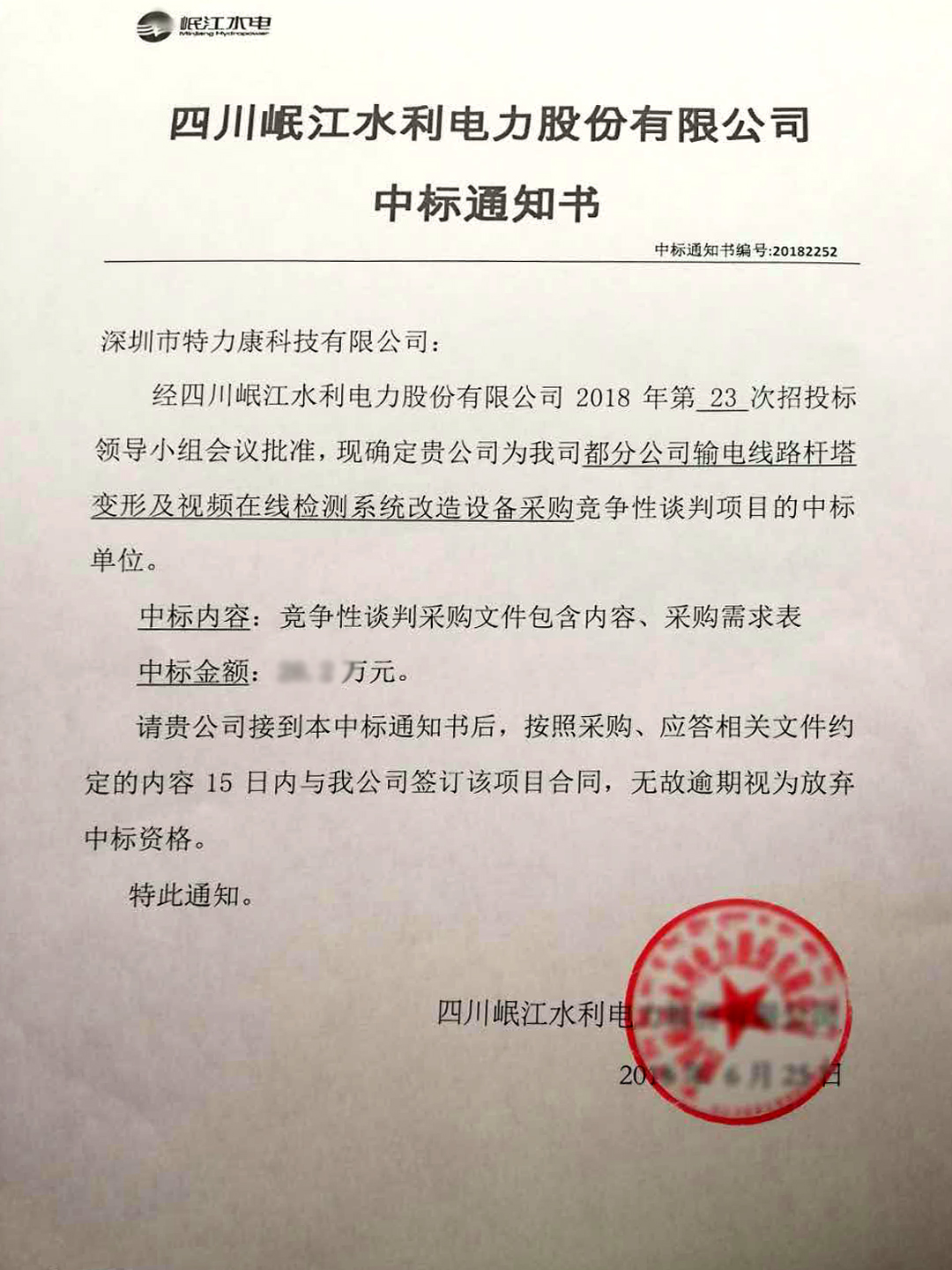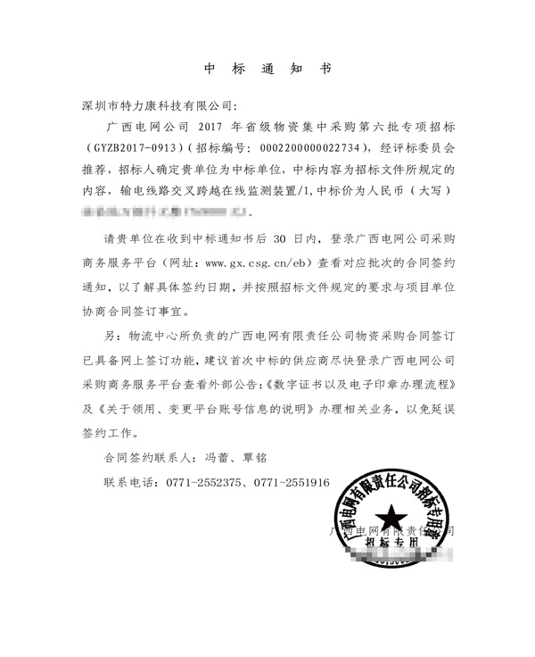 特力康中標國網黑龍江送變電工程公司的2024年度第18次物資類競爭性談判采購項目——慶陽驅鳥器物資框 特力康中標國網甘肅省電力公司省管產業單位2024年第五次物資競爭性談判授權采購項目 中標喜訊:深圳市特力康科技有限公司成功入圍許繼集團綜合能源公司輸電線路視頻在線監測裝置模塊集采項目 中標喜訊:特力康成功中標國網重慶市電力公司渝中一片區項目 特力康成功中標國網天津市電力公司2024年第二次?物?資招標項目 特力康中標國網安徽省電力有限公司蕪湖供電公司2024年3月非物質采購項目 貴州電力裝特力康電網架空線路覆冰監測系統,精準防冰保電網過冬? 百套落地山西電網!特力康輕量化輸電架空線路監拍裝置,筑牢輸電安全網 破解采空區隱患:山西電力裝特力康通用型監測裝置,守鐵塔穩運行 四川電力用特力康架空輸電線路山火監測裝置,筑牢林區輸電 “防火墻”? 遼寧電力啟用特力康多視角監拍裝置,全維度守護輸電安全? 破解黃土高原沉降難題:山西電力用特力康北斗裝置守桿塔安全? 山東電力啟用特力康動態版智能激光驅鳥器,動態防控守護變電站安全? 湖南超高壓電力啟用特力康球機 AI 監測裝置,智能守護輸電通道安全? 廣西電力啟用特力康高壓電纜護層環流監控設備,筑牢電纜安全防線? 寧夏配電線路安裝了我司防外破電子化智能警示牌