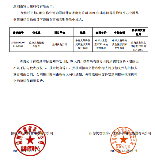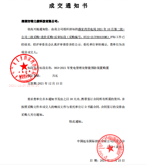 特力康中標(biāo)國(guó)網(wǎng)黑龍江送變電工程公司的2024年度第18次物資類(lèi)競(jìng)爭(zhēng)性談判采購(gòu)項(xiàng)目——慶陽(yáng)驅(qū)鳥(niǎo)器物資框 特力康中標(biāo)國(guó)網(wǎng)甘肅省電力公司省管產(chǎn)業(yè)單位2024年第五次物資競(jìng)爭(zhēng)性談判授權(quán)采購(gòu)項(xiàng)目 中標(biāo)喜訊:深圳市特力康科技有限公司成功入圍許繼集團(tuán)綜合能源公司輸電線路視頻在線監(jiān)測(cè)裝置模塊集采項(xiàng)目 中標(biāo)喜訊:特力康成功中標(biāo)國(guó)網(wǎng)重慶市電力公司渝中一片區(qū)項(xiàng)目 特力康成功中標(biāo)國(guó)網(wǎng)天津市電力公司2024年第二次?物?資招標(biāo)項(xiàng)目 特力康中標(biāo)國(guó)網(wǎng)安徽省電力有限公司蕪湖供電公司2024年3月非物質(zhì)采購(gòu)項(xiàng)目 貴州電力裝特力康電網(wǎng)架空線路覆冰監(jiān)測(cè)系統(tǒng),精準(zhǔn)防冰保電網(wǎng)過(guò)冬? 百套落地山西電網(wǎng)!特力康輕量化輸電架空線路監(jiān)拍裝置,筑牢輸電安全網(wǎng) 破解采空區(qū)隱患:山西電力裝特力康通用型監(jiān)測(cè)裝置,守鐵塔穩(wěn)運(yùn)行 四川電力用特力康架空輸電線路山火監(jiān)測(cè)裝置,筑牢林區(qū)輸電 “防火墻”? 遼寧電力啟用特力康多視角監(jiān)拍裝置,全維度守護(hù)輸電安全? 破解黃土高原沉降難題:山西電力用特力康北斗裝置守桿塔安全? 山東電力啟用特力康動(dòng)態(tài)版智能激光驅(qū)鳥(niǎo)器,動(dòng)態(tài)防控守護(hù)變電站安全? 湖南超高壓電力啟用特力康球機(jī) AI 監(jiān)測(cè)裝置,智能守護(hù)輸電通道安全? 廣西電力啟用特力康高壓電纜護(hù)層環(huán)流監(jiān)控設(shè)備,筑牢電纜安全防線? 寧夏配電線路安裝了我司防外破電子化智能警示牌